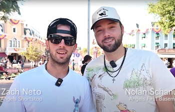 Mickey Mouse, Donald Duck, and Goofy Appear at a Los Angeles Angels Game In Promotion of Topps' New Trading Cards