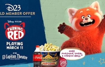 D23 Gold Member Concessions Offer for Screenings of “Turning Red” at the El Capitan Theatre Mar 09, 2022 6:18 pm (Pacific) Laughing Place Disney Newsdesk