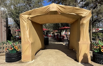 Photos: Recently-Installed Red’s Community Garden Archway Already Covered in Tarps at Cars Land Feb 14, 2025 3:04 pm (Pacific) Luke Manning