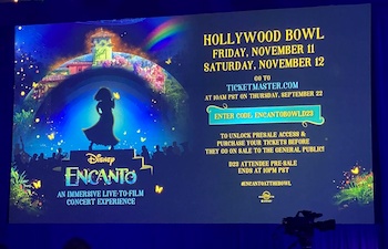 Disney’s “Encanto” Coming to The Hollywood Bowl for Live-to-Film Concert Experience Sep 11, 2022 5:49 pm (Pacific) Laughing Place Disney Newsdesk