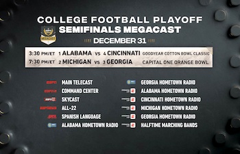 ESPN’s College Football Playoff MegaCast Returns With Nearly 40 Presentations of New Year’s Six Games Dec 21, 2021 3:33 pm (Pacific) Laughing Place Disney Newsdesk