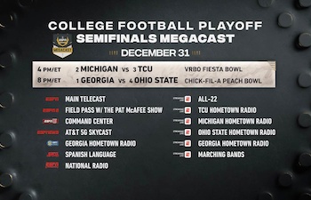 ESPN’s College Football Playoff MegaCast Returns with New and Familiar Offerings Dec 16, 2022 12:55 pm (Pacific) Laughing Place Disney Newsdesk