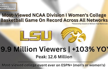NCAA Division 1 Women’s College Basketball Championship Breaks Records for ESPN Apr 03, 2023 3:53 pm (Pacific) Laughing Place Disney Newsdesk