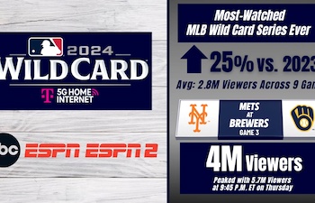 2024 MLB Wild Card Series Becomes Most-Watched Ever on ESPN Platforms Oct 04, 2024 4:41 pm (Pacific) Luke Manning