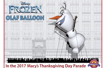 Olaf Balloon to Appear in Macy’s Thanksgiving Day Parade Oct 24, 2017 7:26 am (Pacific) Laughing Place Disney Newsdesk