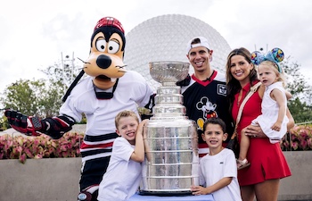 Mickey Mouse, Donald Duck, and Goofy Appear at a Los Angeles Angels Game In Promotion of Topps' New Trading Cards
