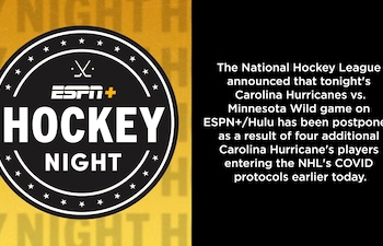 Tonight’s Carolina Hurricanes vs. Minnesota Wild Game on ESPN+ and Hulu Delayed Due to COVID Protocols Dec 14, 2021 1:02 pm (Pacific) Laughing Place Disney Newsdesk
