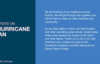 Walt Disney World Releases Updated Statement on Hurricane Ian Sep 29, 2022 8:31 am (Pacific) Laughing Place Disney Newsdesk