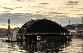 First of Five Floating Platforms For EPCOT’s Harmonious Moved Into Position in World Showcase Lagoon Dec 11, 2020 8:19 am (Pacific) Laughing Place Disney Newsdesk