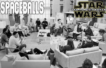 "Spaceballs 2" Table Read Photo Hilariously Parodies the One Released in 2014 for "Star Wars: The Force Awakens"