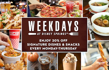 Disney Springs Announces Special Deals at Various Locations as Part of “Weekdays at Disney Springs” Sep 21, 2020 1:43 pm (Pacific) Laughing Place Disney Newsdesk