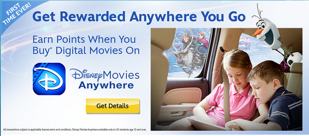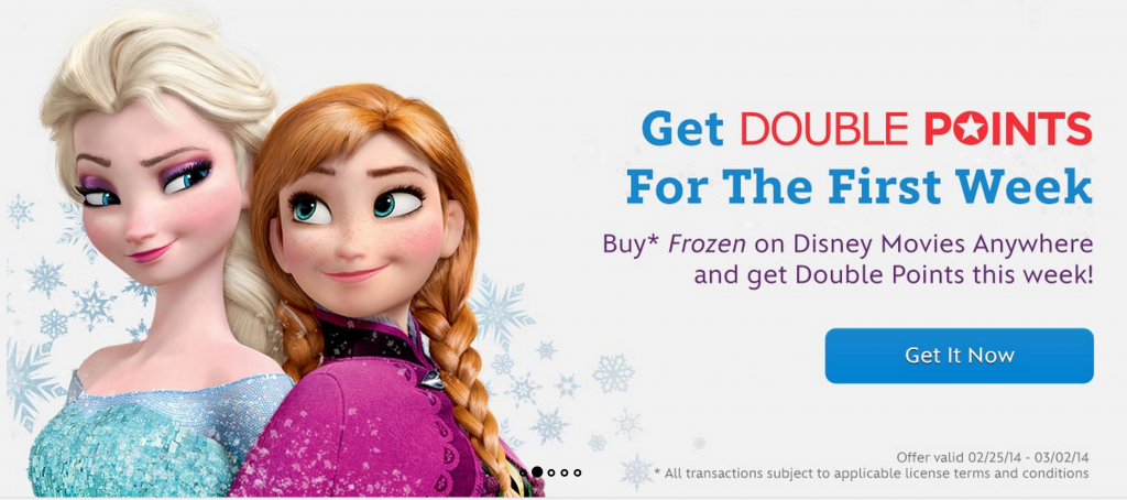 One of the claims of DMA is that you can buy movies on iTunes and be rewarded through DMR. I used their links to purchase Frozen through iTunes. After purchasing, my DMA copy was automatically added to my collection. However, I have yet to see 150 points for the purchase appear in my DMR account. There is even a "double points" promotion if you purchase Frozen during the first week.
