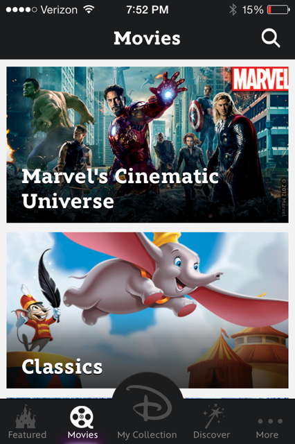 DisneyMoviesAnywhere.com makes no mention of an app. I actually assumed that there wasn't one and visited the site from my iPhone to see what the mobile version was like (I wouldn’t have done so if I hadn’t been writing this blog). However, when viewing the site on a mobile iOS device a pop-up appears advertising the app. I was quickly able to download the free application and sign in to my account. The app's interface is somewhat better than the website. The app is definitely my preferred method for using DMA. You can also download your movies to store on your device within the app (you can not download them to your computer).