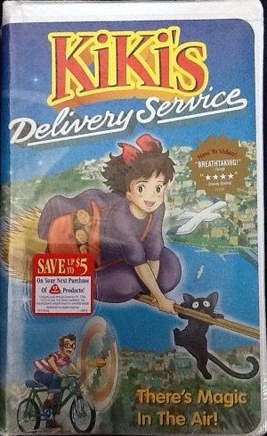 However, Myazaki wasn’t able to fully back his studio with the money made from Nausicaä. In 1985, he found a financial partnership with a publishing company called Tokuma Shoten. Tokuma would financially back and produce most of Studio Ghibli’s films and distribute them in Japan. Similar to Disney’s early days, the studio produced hit after hit, primarily from Myazaki and his friend Isao Takahata. Films like Castle in the Sky, My Neighbor Totoro, and Kiki’s Deliver Service helped secure a future for the studio and generated international interest. One of Ghibli’s first international endeavors came in 1988 when a new L.A. company called Streamline Pictures acquired the rights to dub their films in English for use on transpacific Japan Airlines flights. Twentieth Century Fox bought the home video rights to this version of My Neighbor Totoro and released it on VHS in 1993. While Fox now had the U.S. rights to one of Studio Ghibli’s most popular films (and mascot character), Studio Ghibli had also attracted the attention of another company whose history had so many parallels.Myazaki was looking for a way to pay back Tokuma Shoten for their investment, since animated films were so expensive and Ghibli was averaging about one film every two years. In 1996, Disney and Tokuma signed a complex contract that granted Disney U.S. home video rights to select Ghibli films (the deal excluded Totoro and another Ghibli film that Tokuma didn’t finance called Grave of the Fireflies) in addition to home video rights to all Ghibli films within Japan. With the agreement, Disney also gained international distribution rights for Ghibli’s upcoming film Mononoke Hime (Pincess Mononoke). Disney’s first use of this deal in the Unites States was an English dub of Kiki’s Delivery Service, a European inspired story about a young witch making a name for herself in a small village. Disney was able to assemble an all-star voice cast including Kristen Dunst, Debbie Reynolds, and Phil Hartman, to whom the English language version is dedicated (it was his final film). Kiki premiered in the U.S. on home video on September 1st, 1998, on VHS and Laserdisc. While the name “Studio Ghibli” was absent from the marketing for this release, Disney included an ad for their next release, Castle in the Sky. While the dub was made, Disney scrapped plans for its 1999 home video release. The reasons are unknown, but it can be assumed that Kiki didn’t sell strongly enough to justify future releases.