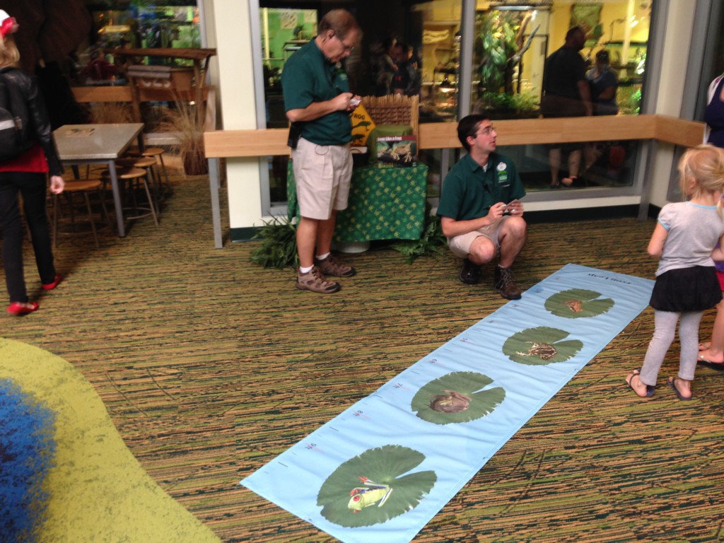 Among the event's were the chance to design your own "toad abode", a flower pot(free from Disney) that you drew on to create a perfect shelter for frogs in your back yard. There was also an area where you could fold your own origami tree frog and learn more about www.aza.org/frogwatch which is a great way to help track frogs just by keeping your ears open. FrogWatch USA is AZA’s flagship citizen science program that invites individuals and families to learn about the wetlands in their communities and help conserve amphibians by reporting the calls of local frogs and toads. Volunteers are trained to enter their FrogWatch USA information and ongoing analyses of these data have been used to help develop practical strategies for the conservation of frogs. This conversation program has been around for over ten years!