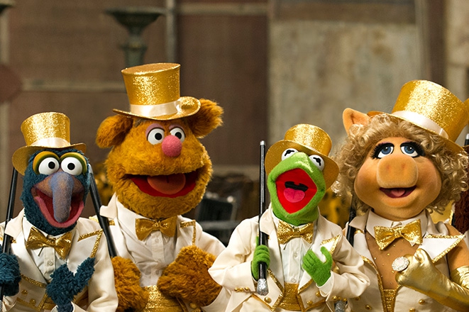 Muppets Most Wanted begins where 2011's The Muppets left off with the fireworks spelling "The End" in the sky above Hollywood Boulevard. As the camera pans down, the crowd walks away to break the fourth wall. They were all extra's, but the studio instantly wants another film. Queue music! A lavish musical number opens the film called "We're Doing a Sequel" that is reminiscent of the openings to The Great Muppet Caper and The Muppets Take Manhattan. The song also reveals the original title of the film, "The Muppets... Again." While taking suggestions for a plot for the sequel, Kermit is inspired by a stranger who walks in and suggests the Muppets do a world tour.