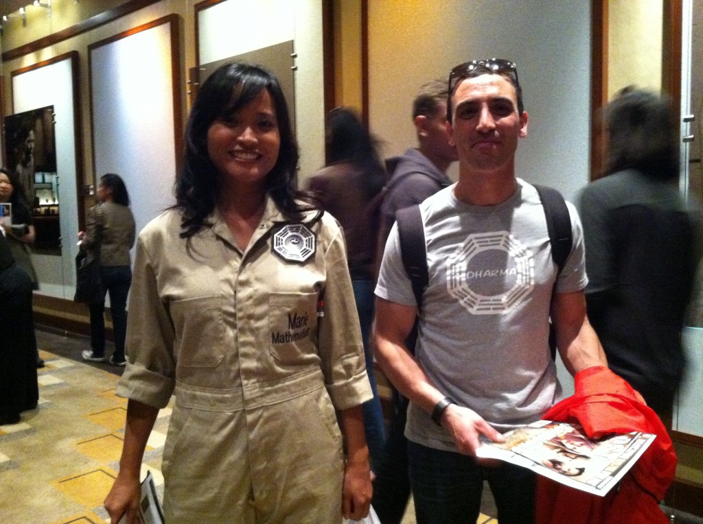 Lindleoff also gave some insight into the shows casting, admitting that after he and J.J. Abrams saw Jorge Garcia in an episode of “Curb Your Enthusiasm”, J.J. told him that he should write a role for the actor in “Lost”. He also told the crowd that Yunjin Kim had originally read for the role of Kate, until the producers found out that Kim was a huge star in Korea and that she had been in, “the Korean version of Titanic”, said Lindelof. After this realization, they decided to create a character for her that could utilize her Korean fluency, and decided that she should be married as well. And so the characters of Sun and Jin were born.