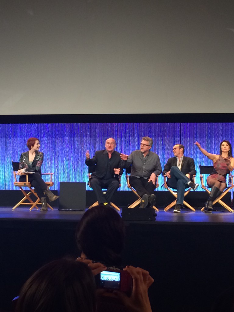 Following the well received episode, it was time to introduce the moderator. Felicia Day is a co-founder of Geek & Sundry as well as an actress best known for her work on the CW’s Supernatural. In short order she introduced the panel. Executive producers Jeph Loeb, Jeffrey Bell, Maurissa Tancharoen, and Jed Whedon were joined by cast members Iain de Caestecker (Fitz), Elizabeth Henstridge (Simmons), Chloe Bennet (Skye), Brett Dalton (Agent Ward), Ming-Na Wen (Agent May), and Clark Gregg (Agent Coulson).