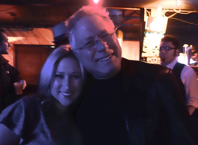 Doors were at 7pm, and the show started at 7:30. Always early, I walked in and spotted Alan Menken and Anna immediately. They chatted with fans and friends while Anna Rose set up her merchandise table. Seeing a chance to introduce myself, I approached Anna Rose. A petite and lovely blonde, she was immediately warm and welcoming. When she heard that I was covering the show for the Laughing Place, serving the Disney community, she graciously offered to introduce me to her father. Mr. Menken was equally charming and generous with his time, and he and Anna Rose posed for a picture.
