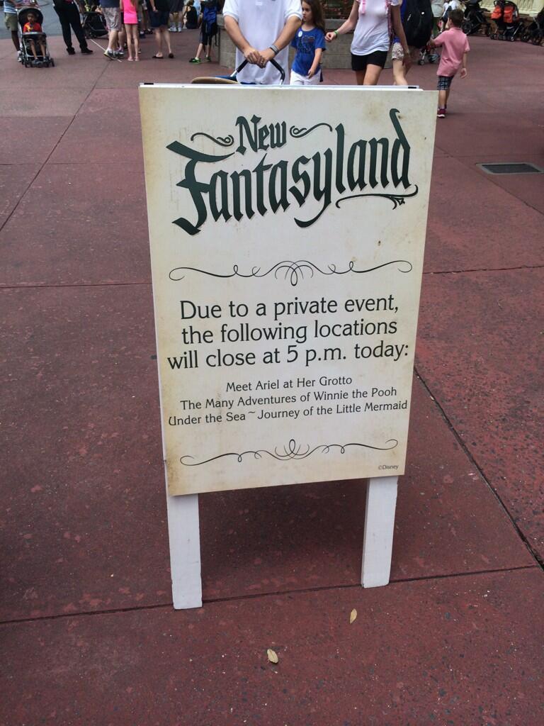 Some Magic Kingdom attractions are closing early tonight due to the media party. Ariel's Grotto, The Many Adventures of Winnie the Pooh, and The Little Mermaid are closing at 500 pm.