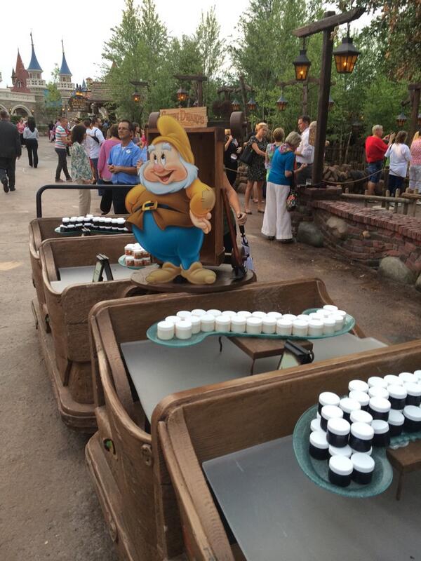 819 pm: At the Seven Dwarfs Mine Train dinner party, the desserts are places inside an old Snow White's Scary Adventure mine car.
