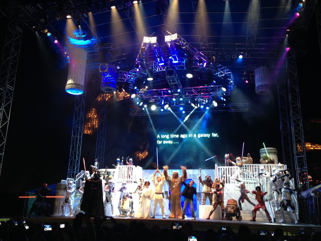 After DJ Lobot powers down James Arnold Taylor takes the stage for the Finale show which introduces all the star Wars characters and together set off the amazing fireworks show!