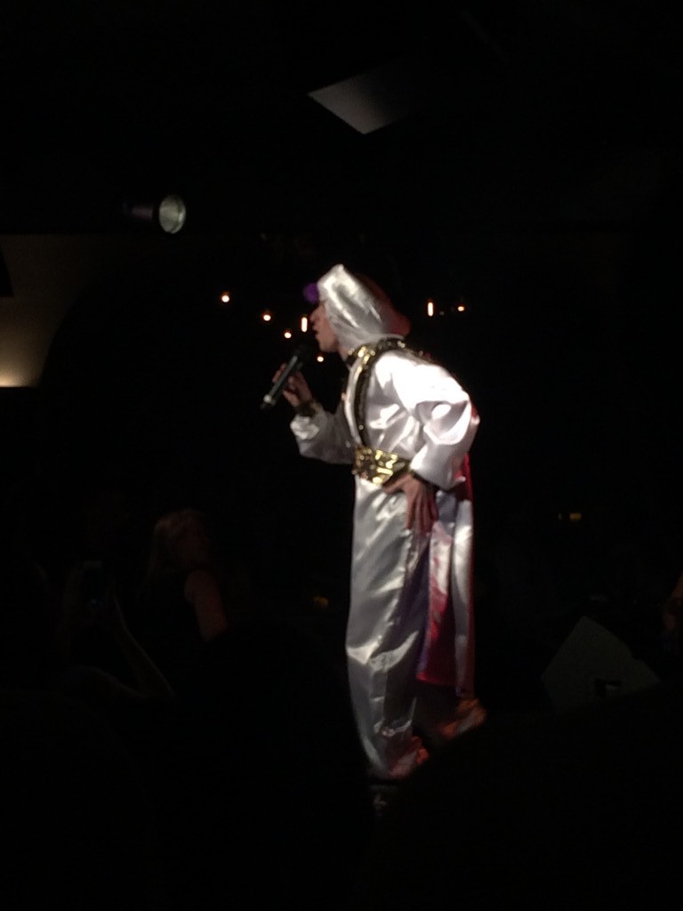 One of the highlights of the show was a round of “Diva Tag”, where any volunteers from the audience were invited onto the stage to join the performers. In this challenge, Pazakis would move the mic from singer to singer at some inopportune times in the song. The game is best played with songs that everyone knows all the words to, thus the obvious choice of the evening was “Let it Go”.