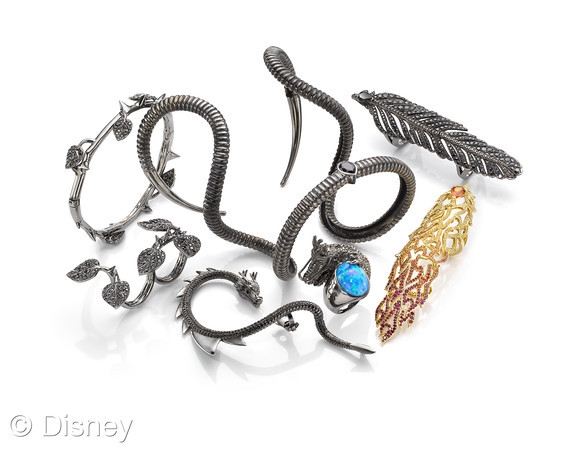 Is it jewelry you crave? The Crow's Nest has designed a decadent line of baubles. There are seven pieces that all reflect Maleficent. Several rings, bracelets and a fabulous dragon ear cuff. Alana's fav is the fire ring set in 18k white gold with multicolor sapphires starting at the bottom with a fire pear shaped sapphire and white sapphires going to yellow to orange and finally to that yummy hot pink! Gives me goosebumps! This collection was designed by 27 year old jewelry phenom Daniel-Philip Belevitch from Russia. Alana is providing a link to this amazing website but be warned! There are scantily clad woman in jewelry so probably best that the kiddies are not surfing the net with you when shopping. http://www.crowsnestjewels.com/#" This line starts at $5180.00 and goes up to $20,880.00. It is available here in the United States at Fivestory and at Fragments, both in New York City.