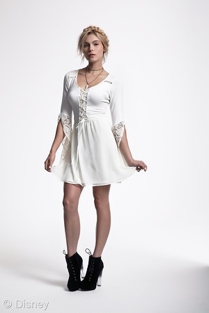 What? Your black American Express Card hasn't arrived in the mail yet? Don't worry. Alana has two words for you....Hot Topic. Always a great place to go for dark and fun affordable Disney apparel. Don't miss out on the Bat Wing Hooded Cape with faux leather detail crow skull hardware and a Maleficent Charm. A perfect throw for on the go! And at $49.50 this is currently sold out on line but still available in many stores. Alana also loves the "Aurora Bell Sleeve Dress" in white for $49.50 and the Maleficent Asymmetrical Feather Top for $32.50.