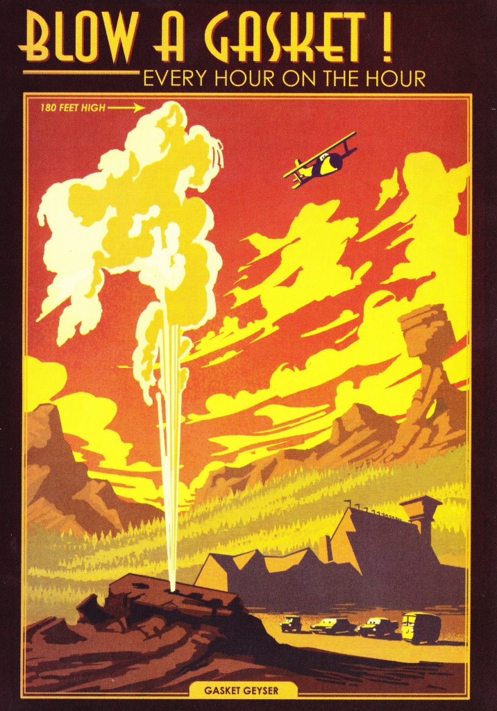 Planes: Fire and Rescue is set largely in scenic Piston Peak National Park. According to Art Director Toby Wilson, Piston Peak is the National Park of all parks. Wilson drew on his own memories of family trips to Yellowstone, Yosemite and other natural wonderlands. His first step in creating Piston Peak was to create a series of evocative poster images, reminiscent of the ones that lured travelers to the newly established National Parks during their early years.