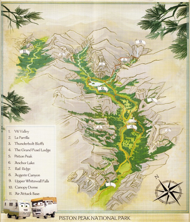 While all of this splendor exists only in the mainframe computers of Disneytoon Studios, it is not hard to believe it is an actual place while enjoying Planes: Fire and Rescue. Let us take you, then, for a tour of Piston Peak National Park.