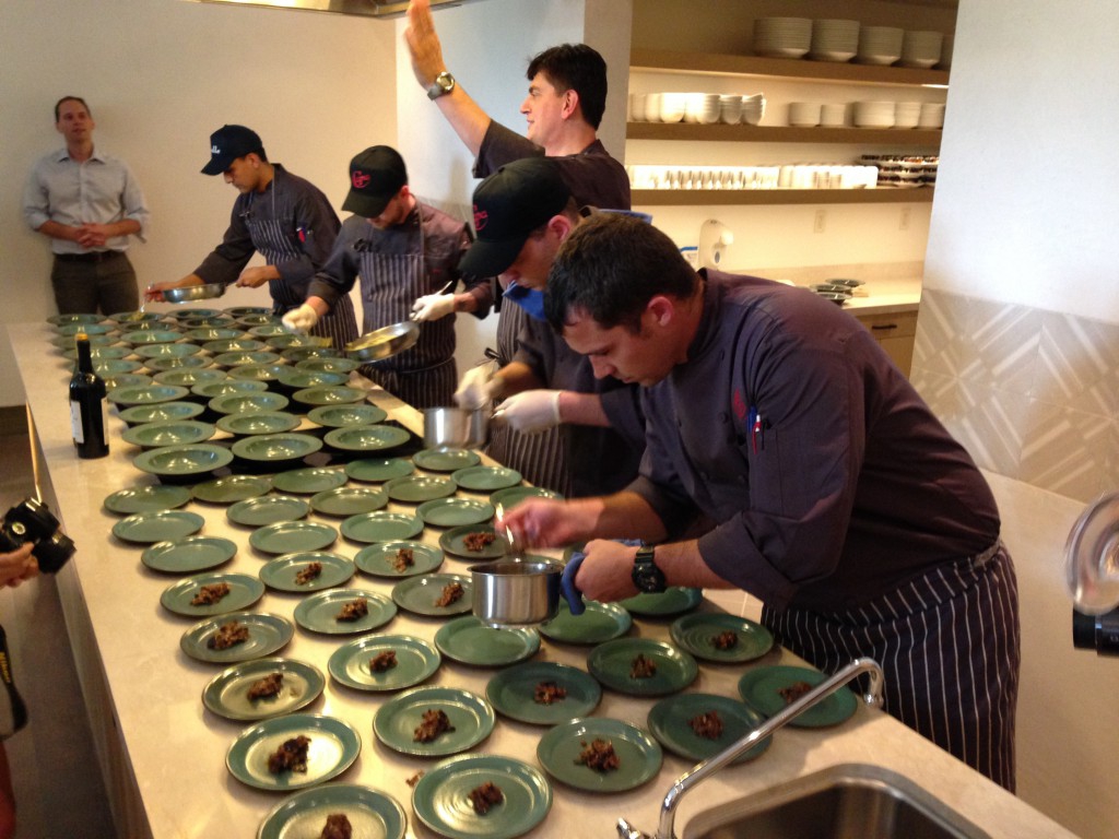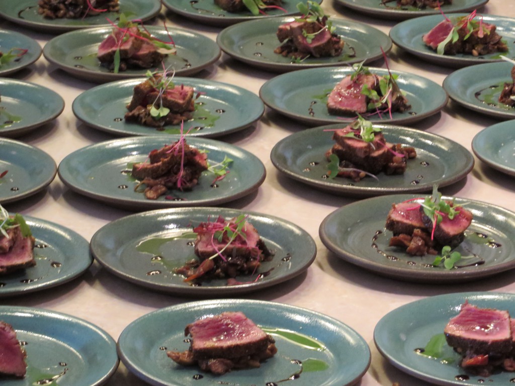 Once all the pleasantries were done we were moved downstairs to the Ravello Restaurant, that will be home of character breakfasts once open, for our first chance to taste some of the food. We were greeted by Executive Chef Fabrizio Schenardi and his team in the demo kitchen where as he spoke to us about the exciting offerings that the Four Seasons will have for guests his team plated samplings of Veal Ravello and Tonno, a pan seared tuna both amazing and paired perfectly with the house wines.