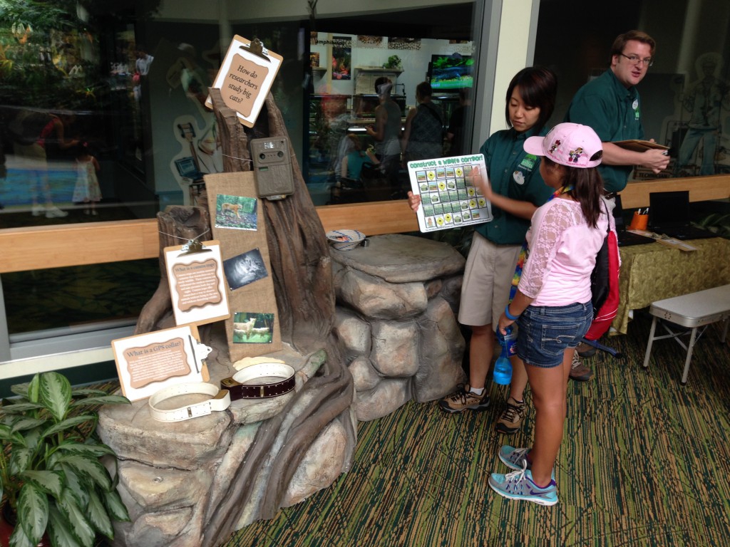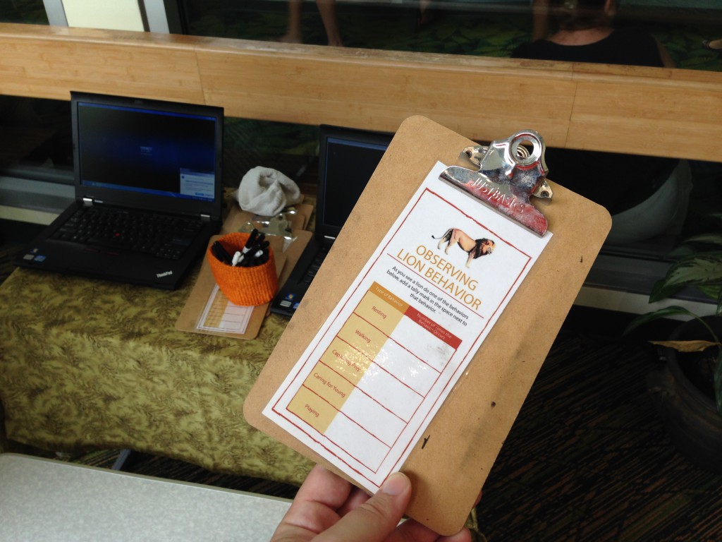 The next table was a chance to see what it is like to be in the wild documenting the behavior of the Lion or Tiger. A short video was shown and the guest would keep track of the animal's behavior.