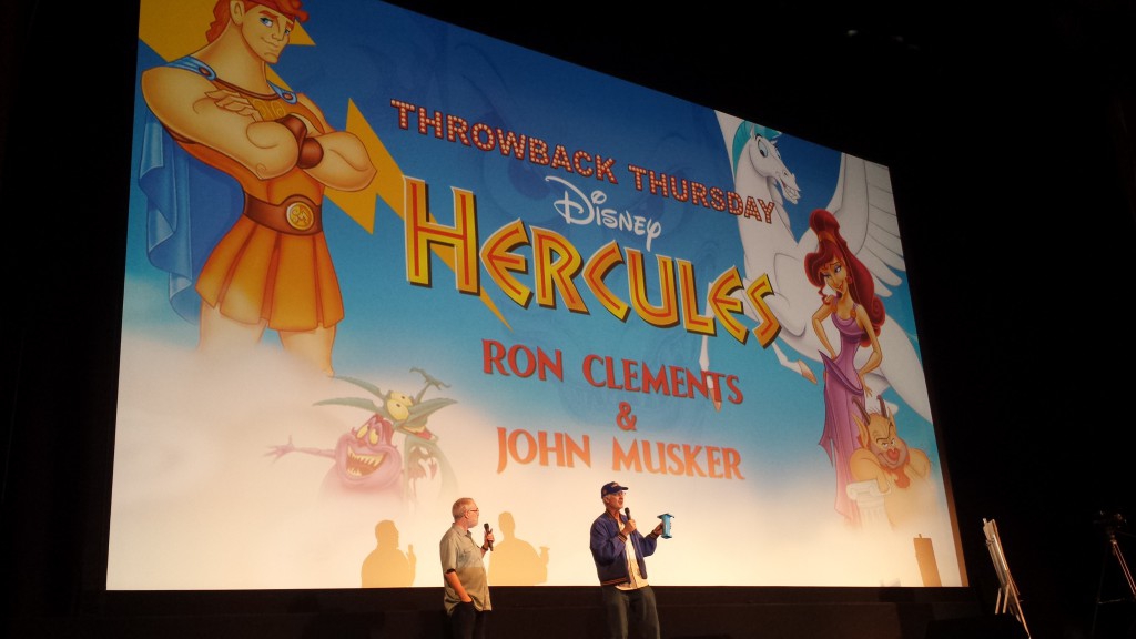 The theater burst into loud applause as John Musker and Ron Clements were introduced to the stage. The writer/director duo spoke very briefly of the creative process that went in to bring Hercules to the silver screen, touching on the challenges of presenting the Greek hero's ancient story to a modern audience. The most memorable story was how they worked with a renowned music video director on the musical numbers featuring the Muses. A live action reference video was shot of the Muse models performing "Zero to Hero" in it's entirety using the same method the music video director used for his popular clients. The audience was treated to the reference video, which fused the live action Muses with storyboard art. The video was a treat and definite crowd favorite for the evening.