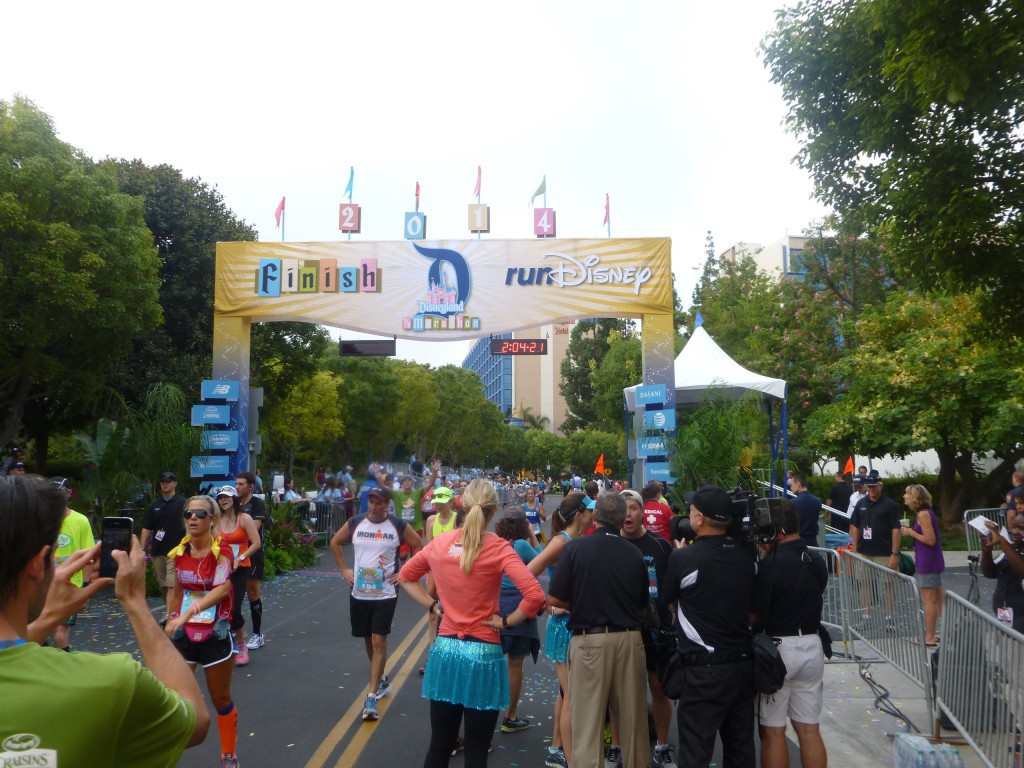 Despite being very hot and humid at the start of the race, the sun stayed behind the clouds for a couple hours after daybreak, which really helped keep temperatures down and spirits up. I had already finished when I first saw it, and most runners had already passed Angel Stadium so the sun was at their backs. After leaving the stadium, with just 5K to go, it's time to buckle down and head back to the Resort for the finish. Although it's mostly a straight shot from the stadium, the final mile of the course includes some twists and turns that make it tough to visualize where you are; despite being a 13.1 mile course, you can't even see the finish line from the 13 mile marker. I made it to the finish (surprisingly, with every bit of my toenail intact) in 2:02:56, which was within one minute of my other recent runDisney finish times. I’m nothing if not consistent!