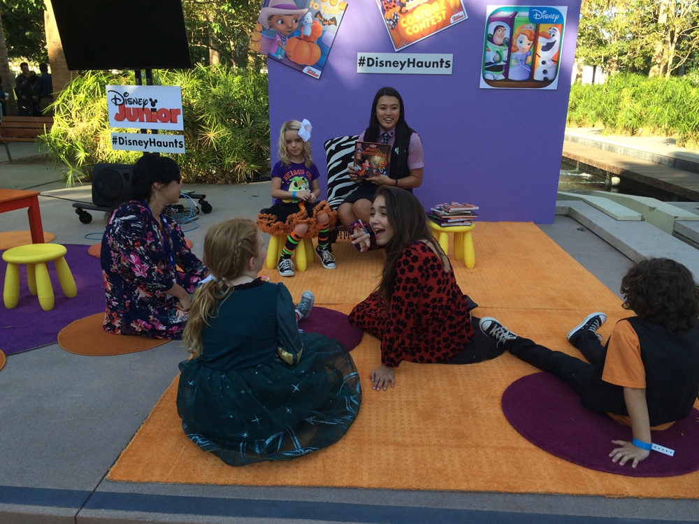 The Disney Campus in Glendale played host to a special evening filled with merchandise unveilings of the spooky persuasion. Out on the central patio, booths were set up with carnival games for the attending families, like miniature golf and ring toss. There were also areas dedicated to Disney Junior, which featured Halloween cartoons playing on a screen, as well as one for Disney Publishing, that held readings of Halloween stories featuring popular Disney characters.
