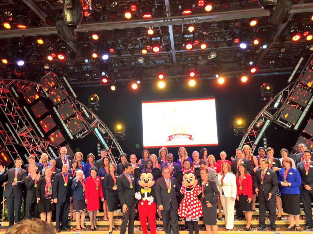 On October 10th, 2014 Walt Disney World President George Kalogridis along with current WDW Ambassadors Tye Arnold and Rich Tamayo had the honor of naming the 2015 - 2016 Ambassador team of Caitlin Busscher and Nathaniel Palma whom were chosen from the nearly 70,000 Cast Members of the Walt Disney World Resort to represent WDW as part of the 50 years of Ambassador.