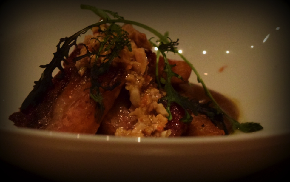 Below Cerdo prepared with pork belly, apple and marcona almond