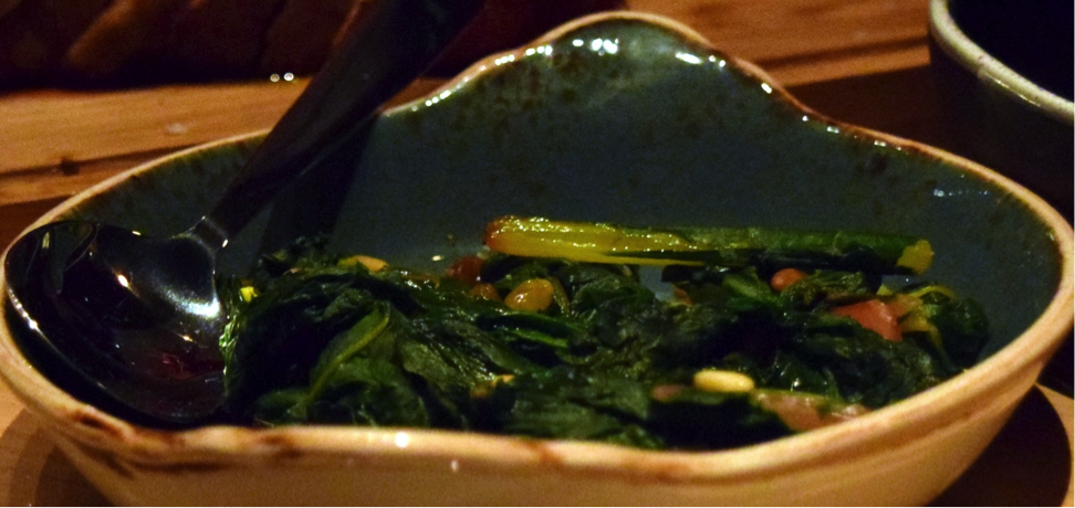 Below, Acelgas prepared with swiss chard, pine nut and raisins