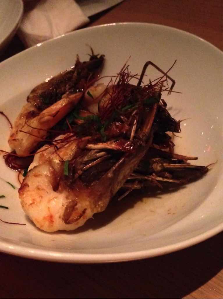 Below, Gambas – prawns, chili, romesco