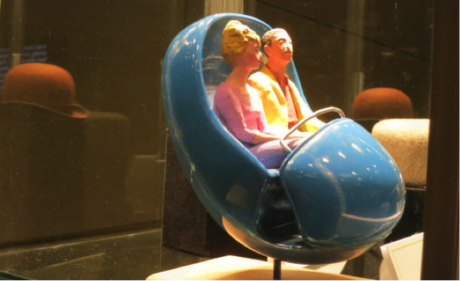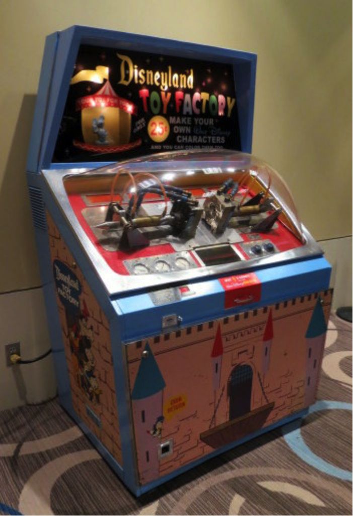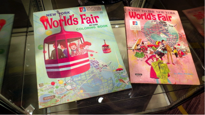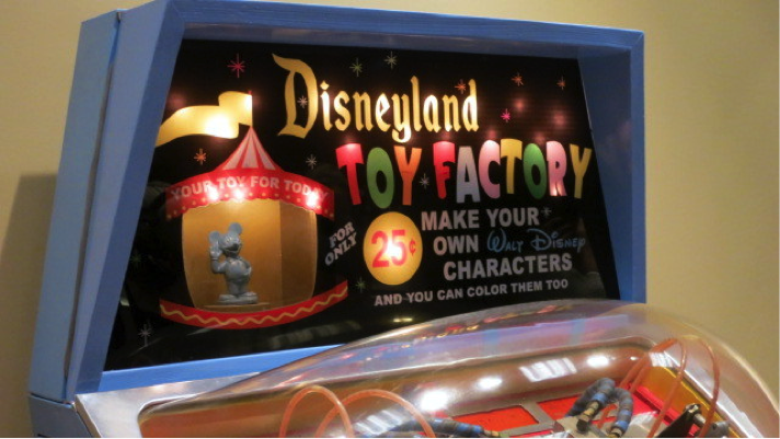 The “Mold-O-Rama”, pictured below, is a wax toy-making contraption that was quite popular during the 1950’s and 1960’s. These machines churned out Disney figurines and colored dinosaurs at the fair, particularly in the Sinclair Dinoland area, according to Becky. The machine pictured is a working machine with the original electronic boards and we could still smell the melted wax. The white Disney figurines in the pictures below are from the World’s Fair while the colored dinosaurs are borrowed from a collector in Florida for this display to demonstrate the variety of toys this machine could produce. Another LaughingPlace.com correspondent, Jeremiah, posted this link, showing the machine in action! Check it out here: http://t.co/rohwreNDq6
