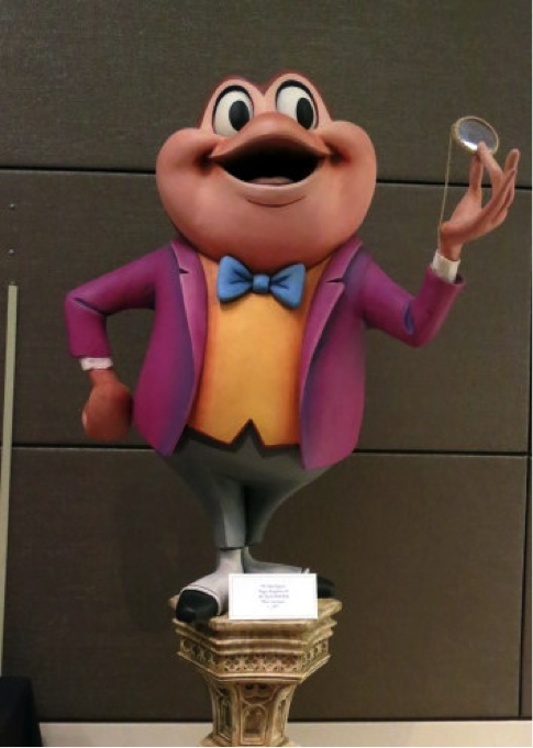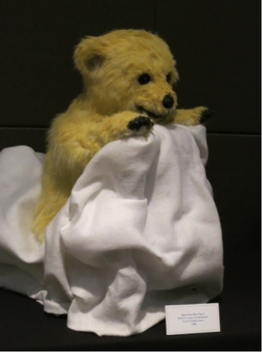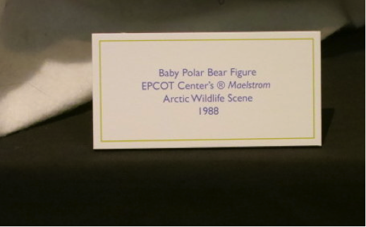 What Disney exhibit would be complete without a few precious and beloved items from retired attractions? Below is a baby polar bear that was taken from Epcot’s Maelstrom (which was retired a few months ago amid much controversy) as the ride is being converted to a Frozen themed attraction.