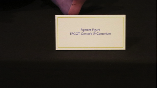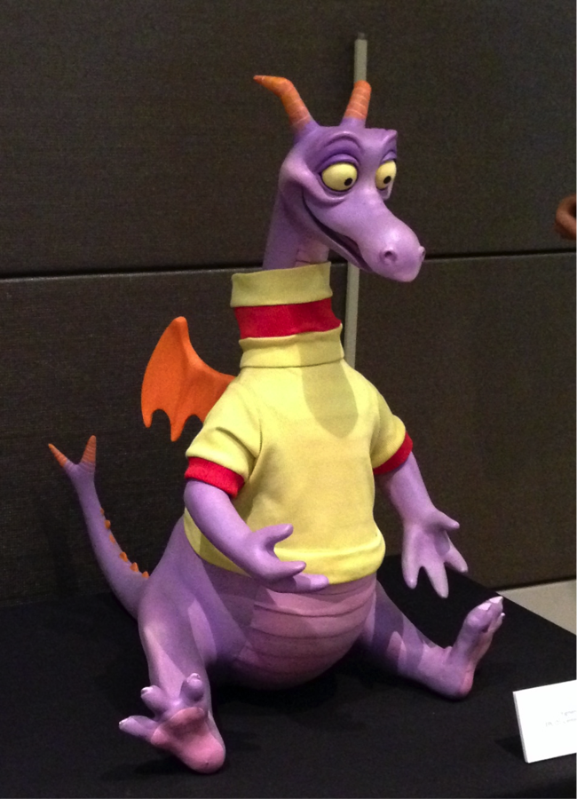 Figment is pictured below. Tony Baxter, a Disney Legend, told us during a presentation that Figment was originally imagined and drawn as a green dinosaur, however when Kodak (the sponsor) saw the logo they were slightly concerned because their rival, Fuji, has a green dragon logo. Figment was promptly drawn to be a purple dragon.