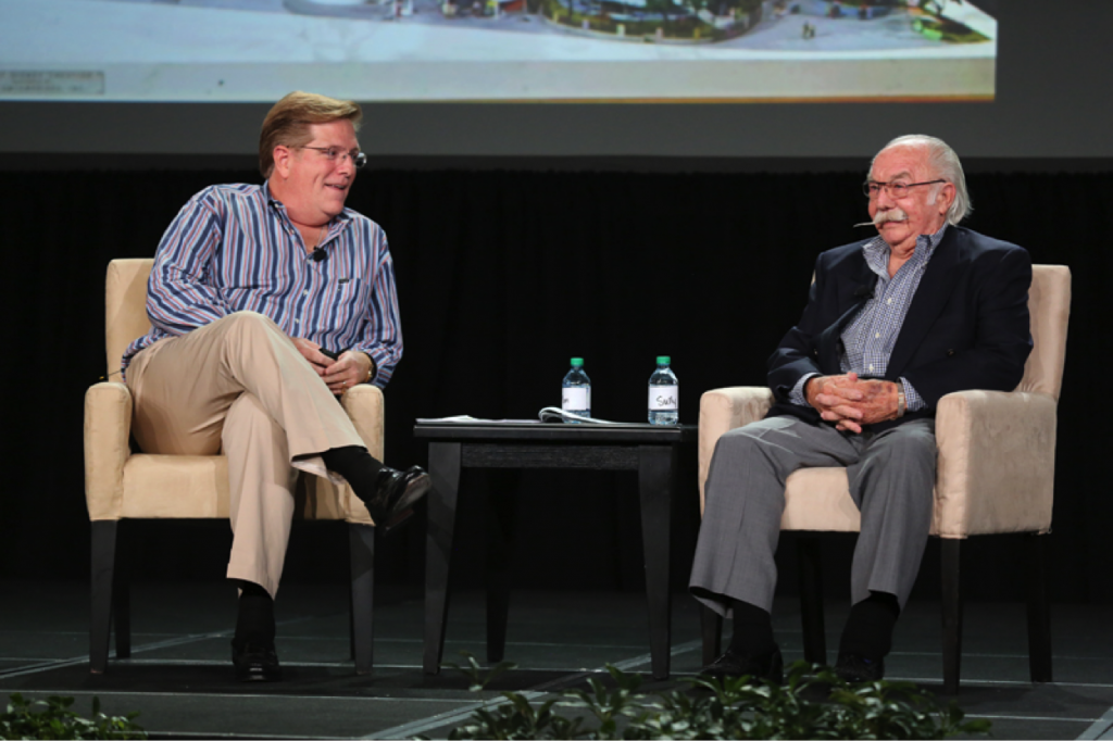 Below, historian Michael Kelley and former Imagineer Jack Gladish.