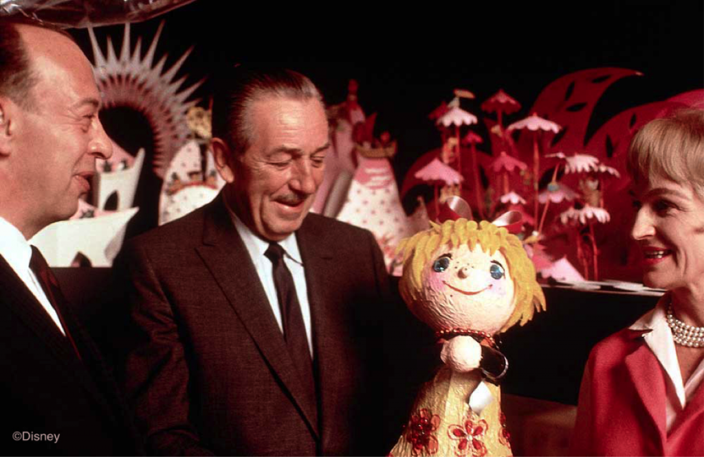 Above, Walt Disney is pictured with designers Marc Davis and Mary Blair in this image featured in the “it’s a small world” presentation in which Disney Legend Bill Sullivan and Historian Tim O’Day explored the development and operation of this beloved attraction.