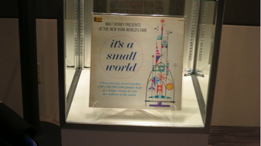 A souvenir it’s a small world record is displayed in the Treasures of Walt Disney Archives exhibit from the fair.
