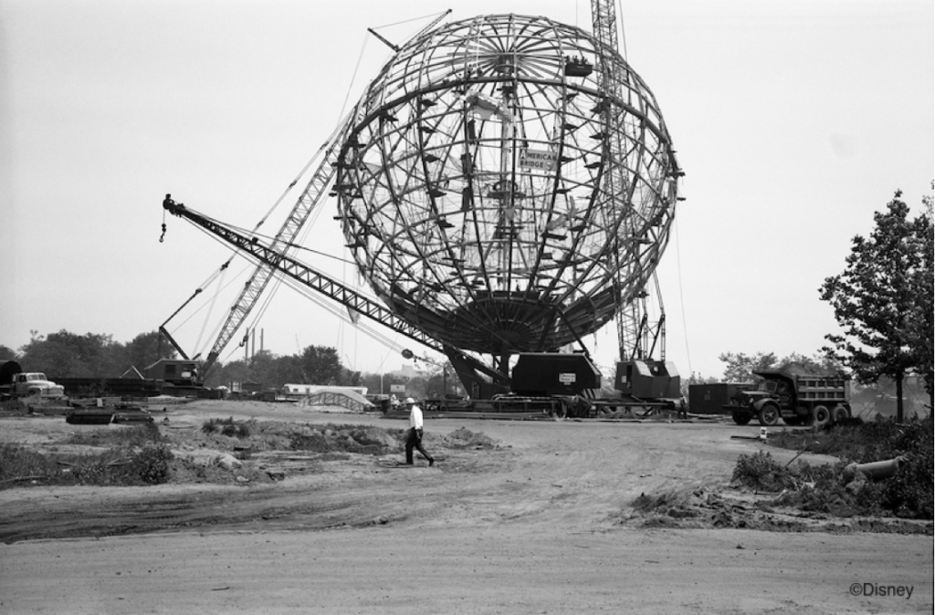 Above, construction of the Unisphere of the 1964-65 New York World’s Fair, as seen in the “Welcome to the World’s Fair” retrospective presentation by historian Bill Cotter.