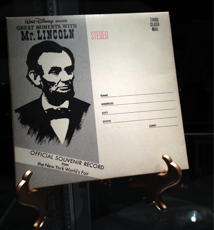 Above, a souvenir record that was available for purchase from the Illinois Pavilion, Mr. Lincoln attraction. You could affix postage, write an address and then dare to mail a record in the U.S. Mail!