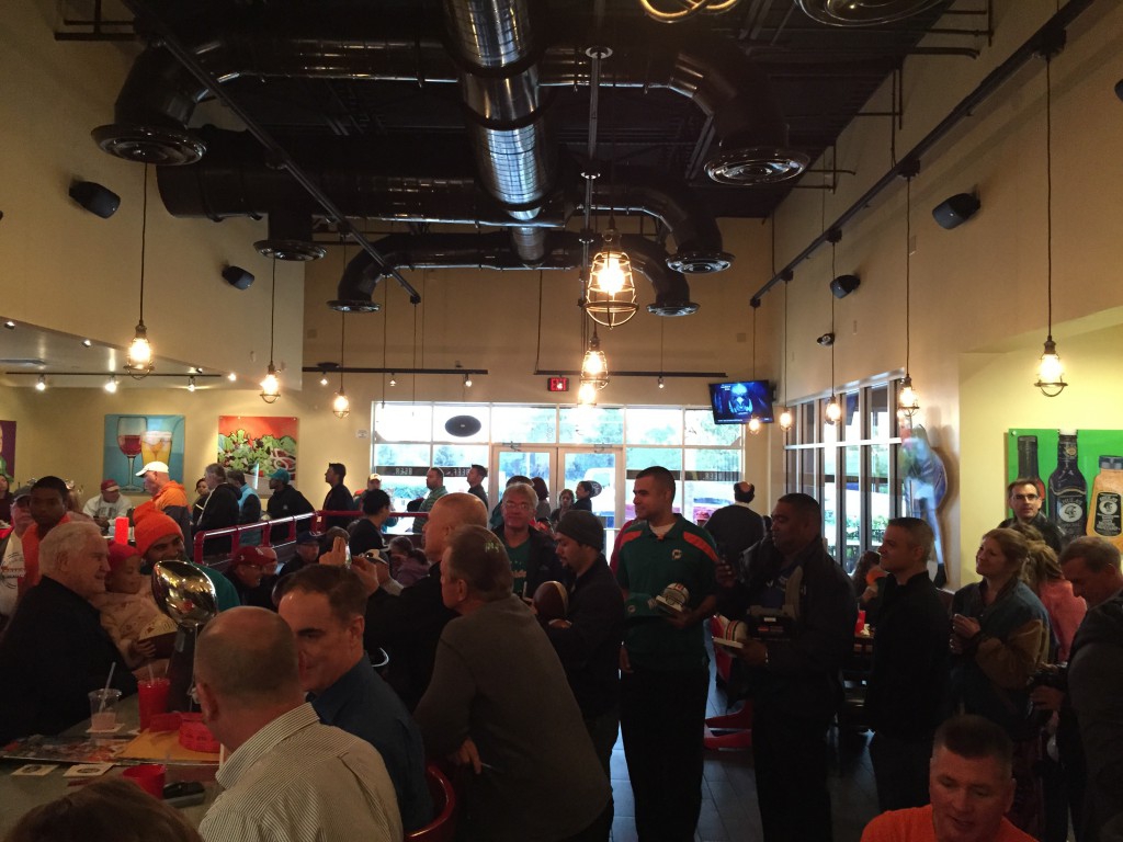 This location takes the same pride in its' burgers that the Coach did in his teams! As part of their 1 year celebration the Coach came down and celebrated with a few fans (line was out the back door for hours).