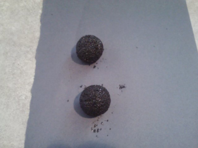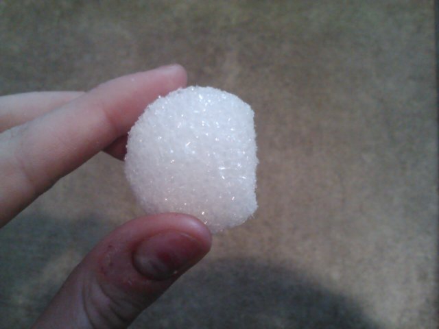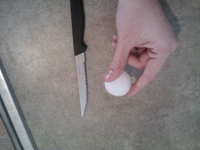 Using a serrated knife, cut a small corner off both styrofoam balls so they will adhere to your ornament better.